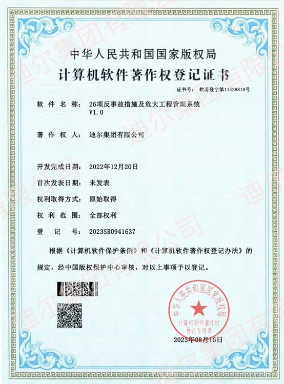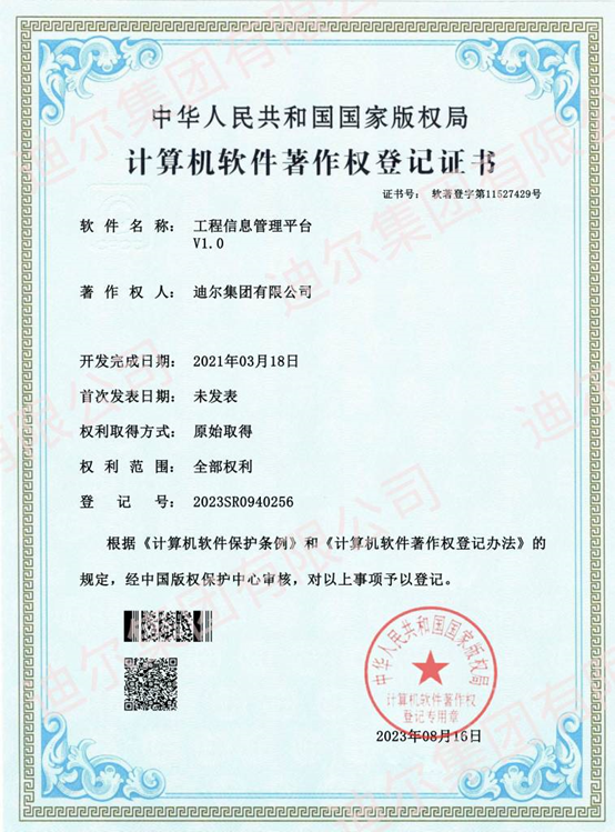 2023年9月15日,公司自主設(shè)計(jì)開發(fā)并實(shí)施應(yīng)用的五個信息化管理系統(tǒng):綜合管理平臺、項(xiàng)目預(yù)算管理系統(tǒng)、物資管理系統(tǒng)、工程信息管理平臺、反事故措施及危大工程管理系統(tǒng),均獲批國家版權(quán)局計(jì)算機(jī)軟件著作權(quán)。