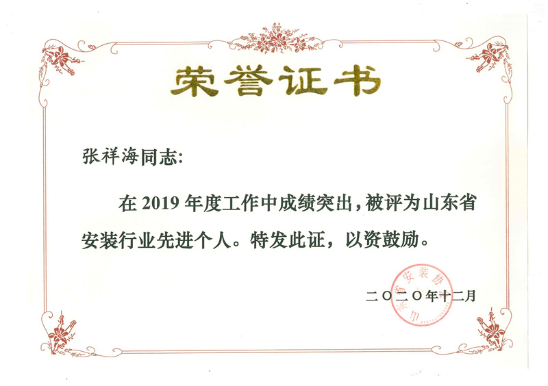 Certificate of honor